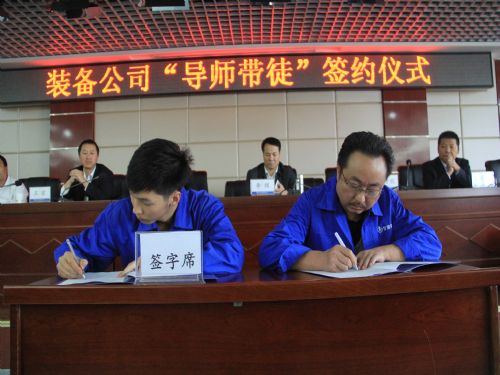 2014年9月25日,甘肅甘肅建投裝備公司在十樓會議室隆重舉行2014年度“導師帶徒”簽約儀式。裝備公司總經(jīng)理、黨委書記、工會主席、總工程師、生產(chǎn)總監(jiān)、財務總監(jiān)出席了此次會議。此次活動由裝備公司團委舉辦,主要目的是通過簽訂導師帶徒協(xié)議,引導青年員工在崗位上學習,幫助青年在崗位上成才,提高青年員工的整體素質,加快青年人才的培養(yǎng),不斷提升公司整體管理水平。今天的“導師帶徒”簽字協(xié)議活動共有四項議程。